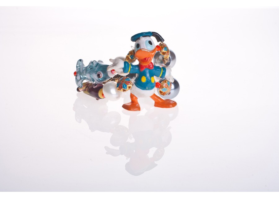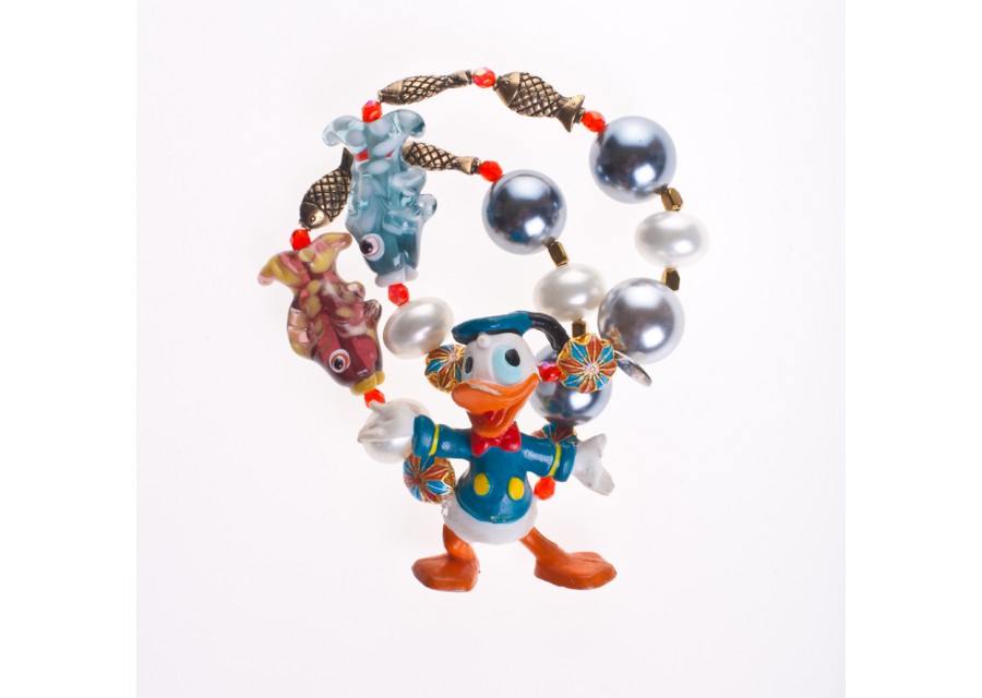 Vintage 80's figurine is made of PVC plastic and is approx. 2 inches tall and 2 inches wide Decorated with quarts, handmade glass beads, mother of pearl and brass beads. *Size Small/Medium Stretch Bracelet *This is a one-of-a-kind Alter Ego collectible.