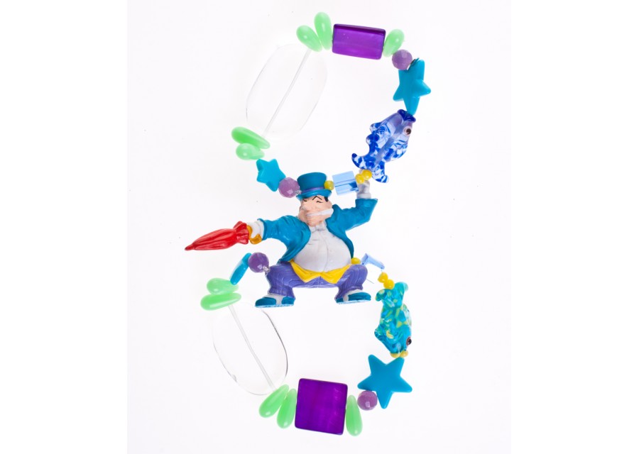 Vintage 80's figurine is made of PVC plastic and is approx. 1 1/2 inches tall and 2 inches wide Decorated with glass, vintage beads, glazed mother of pearl and quartz. *Size Small/Medium Stretch Bracelet *This is a one-of-a-kind Alter Ego collectible.