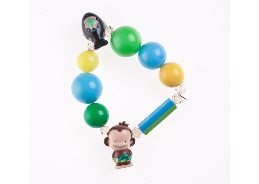Vintage 80's figurine is made of PVC plastic and is approx. 1 1/2 inches tall and 1 1/2 inches wide. Decorated with recycled charms, Swarovski Crystals and vintage beads and dabbles. Size Small/Medium Stretch Bracelet. This is a one-of-a-kind Alter Ego collectible.