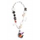 Vintage Looney Tunes™ Pepe Le Pew figurine is made of PVC plastic and is approx. 3 inches tall and 2 1/2 inches wide. Decorated with crystals, faux pearls, glass, silver plated onyx beads, lucite, dyed turquoise and onyx. Necklace is approx. 27 inches long with silver lobster claw closure. Toy is attachable from necklace. Looney Tunes™ Collection by Erika Walton™