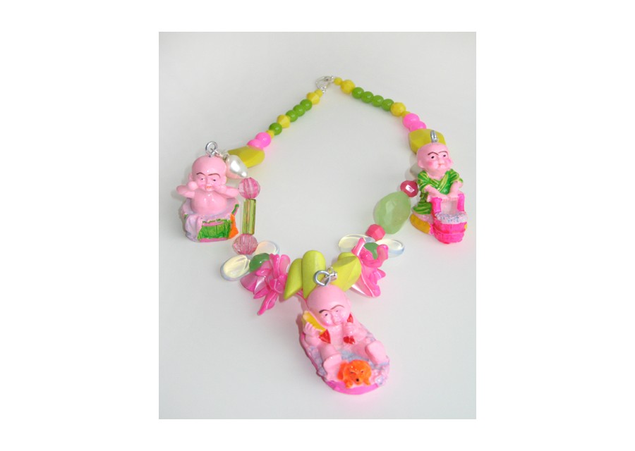 - Decorated with crystals, recycled materials, moon stone, quartz and mother of pearls.