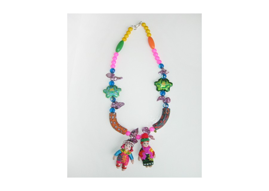 - Necklace is approx. 24" long with Silver lobster claw closure. Dolls are attachable from necklace.